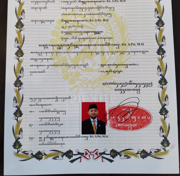 Selectaja.com – Wakil Ketua (Waka) II DPRD Provinsi Jambi Pinto Jayanegara akan mendapatkan penganugerahan gelar adat Keraton Surakarta Hadiningrat. Pemberian gelar dari Sultan Pakubuwono XIII ini rencananya dilangsungkan di Kota Solo dengan gelar Kanjeng Raden Tumenggung (KRT) K.R.T. Pinto Jayanegara Hadiningrat.