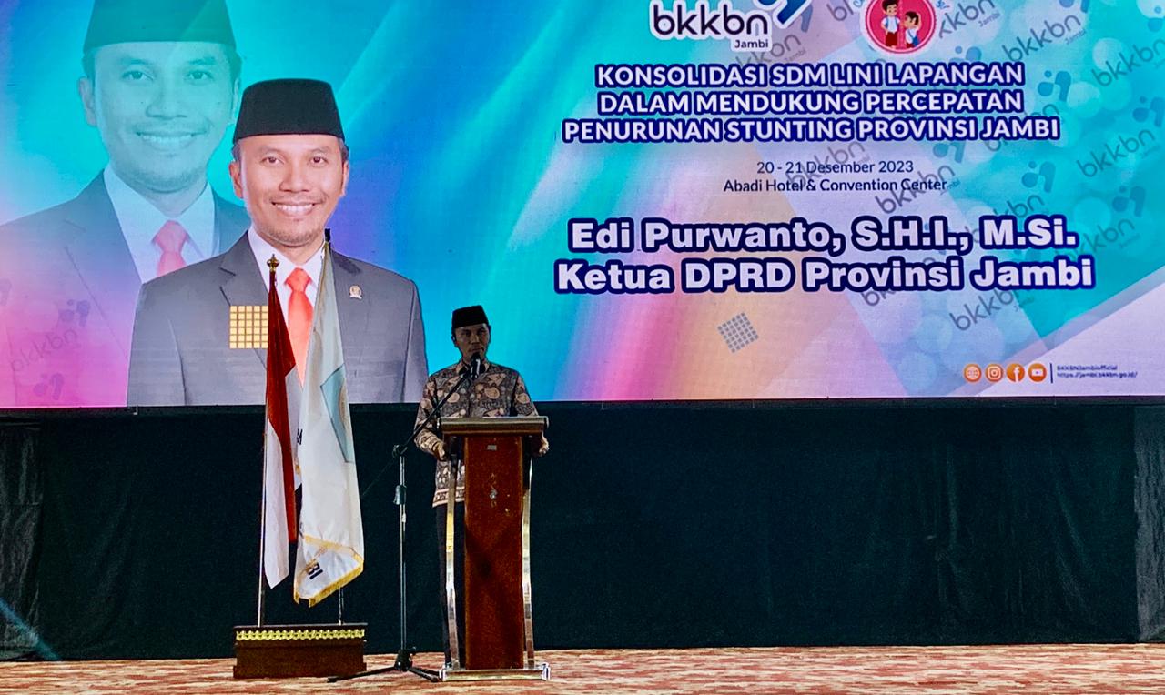 SELECTAJA.COM, Jambi – Edi Purwanto hadiri konsolidasi penurunan stunting oleh BKKBN Jambi. Ratusan penyuluh Keluarga Berencana dan petugas lapangan Keluarga Berencana se Provinsi Jambi menyambut kedatangan Ketua DPRD Provinsi Jambi, Edi Purwanto, Rabu (20/12) di Abadi Convention Center.