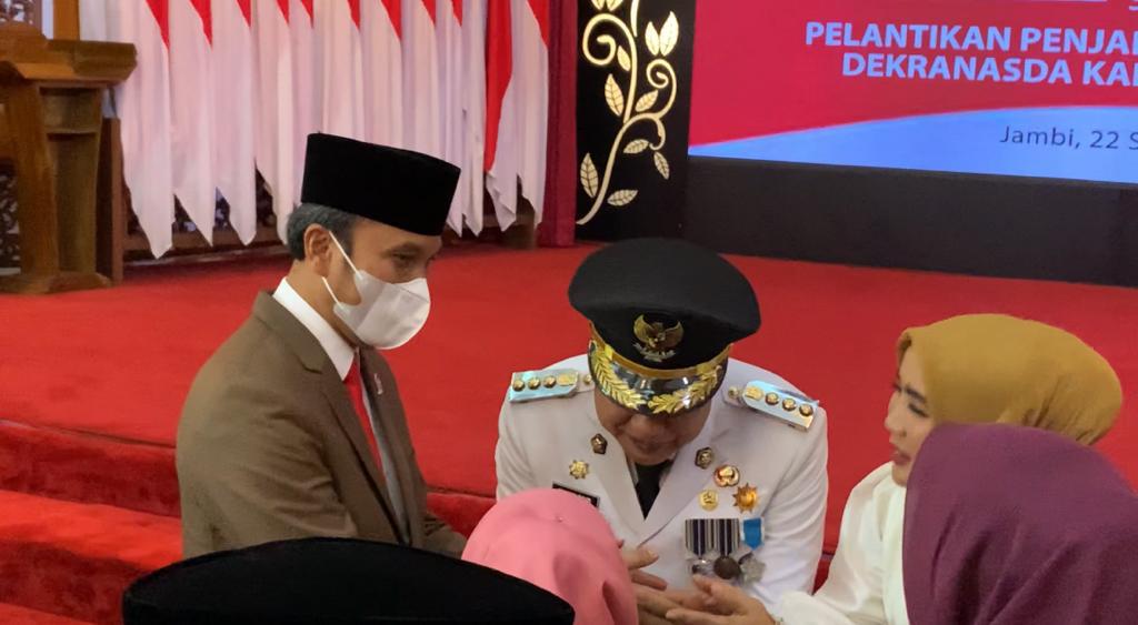 SELECTAJA.COM, Jambi – Ketua DPRD Provinsi Jambi, Edi Purwanto menghadiri pelantikan pejabat bupati merangin oleh Gubernur Jambi serta pelantikan pejabat ketua TP PKK dan Dekranasda , di Aula Rumah Dinas Gubernur Jambi, Jumat (22/9).