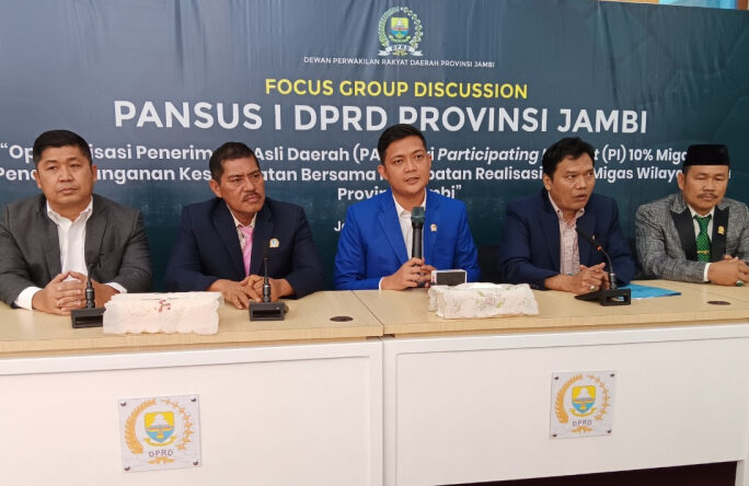 JAMBI – DPRD Provinsi Jambi menegaskan komitmennya dalam mendorong percepatan realisasi Participating Interest (PI) 10 persen Migas untuk meningkatkan Pendapatan Asli Daerah (PAD). Hal ini ditegaskan dalam Focus Group Discussion (FGD) yang digelar Pansus I DPRD Provinsi Jambi, Selasa (29/4), sekaligus penandatanganan kesepakatan bersama percepatan realisasi PI 10 persen Migas di wilayah kerja Provinsi Jambi.