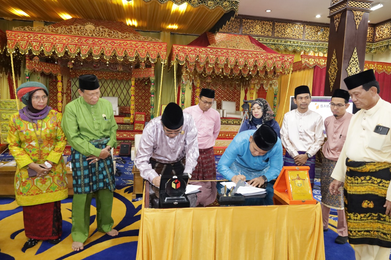 Penandatanganan nota kesepakatan atau Memorandum of Understanding (MoU) dilakukan oleh Ketua Lembaga Adat Melayu Jambi Datuk Temenggung Putro Joyodiningrat Drs. H. Hasan Basri Agus, M.M dan Ketua Bawaslu Provinsi Jambi Wein Arifin, S.IP., M.IP, yang disaksikan oleh Anggota Bawaslu Provinsi Jambi dan Kepala Sekretariat Bawaslu Provinsi Jambi serta pengurus LAM Jambi Provinsi Jambi dan LAM Kabupaten/Kota se-Provinsi Jambi.